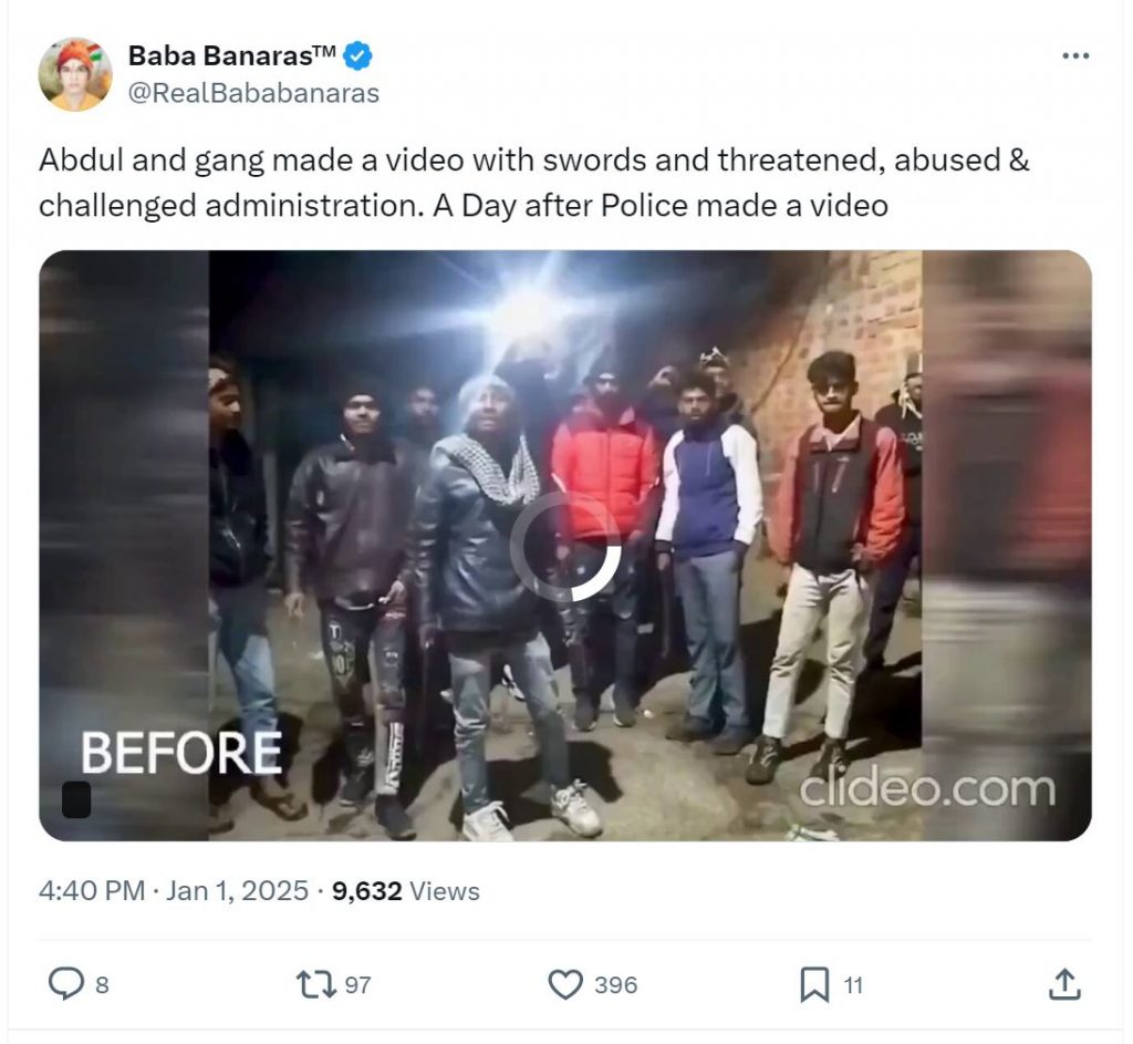 राइट विंग यूज़र @RealBababanaras ने भी वीडियो शेयर करते हुए आरोपियों को मुस्लिम समुदाय का बताया. (आर्काइव लिंक)