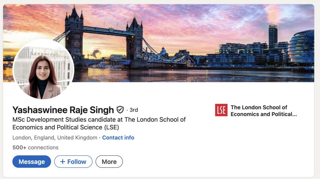 यशस्विनी राजे सिंह एक सोशल मीडिया इंफ्लुएंसर हैं, जिन्होंने लंदन स्कूल ऑफ इकोनॉमिक्स एंड पॉलिटिकल साइंस (एलएसई) से डेवलपमेंट स्टडीज में एमएससी और किंग्स कॉलेज लंदन से इंटरनेशनल रिलेशंस में बीए की पढ़ाई की हैं. उनके लिंक्डइन प्रोफाइल के मुताबिक, वो यूनिसेफ इंडिया, कॉमनवेल्थ ह्यूमन राइट्स इनिशिएटिव और यहां तक कि लंदन के सरकारी विभागों में इंटर्न या सलाहकार के रूप में कार्यरत रह चुकी है.