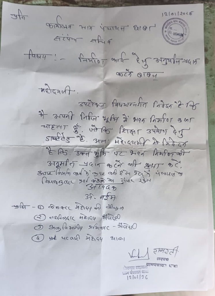 ग्राम पंचायत ने दिया NOC (अनापत्ति प्रमाण पत्र)