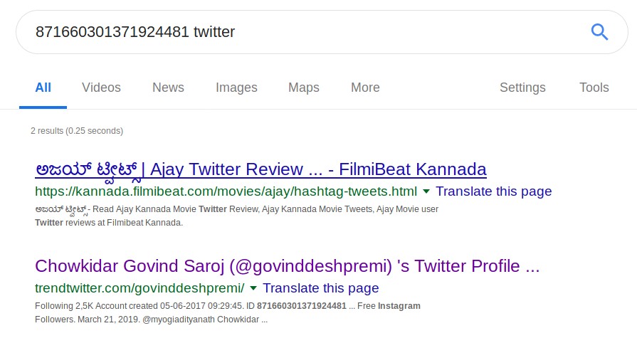 हर ट्विटर अकाउंट की एक खास संख्यात्मक पहचान (यूनिक न्यूमेरिक आईडी) होती है। उसका पता लगाने के लिए gettwitterid.com जैसी वेबसाइटों का उपयोग किया जा सकता है। ट्विटर अकाउंट ‘realjanhvi’ के मामले में, Twitter संख्यात्मक ट्विटर आईडी ‘871660301371924481’ है।
