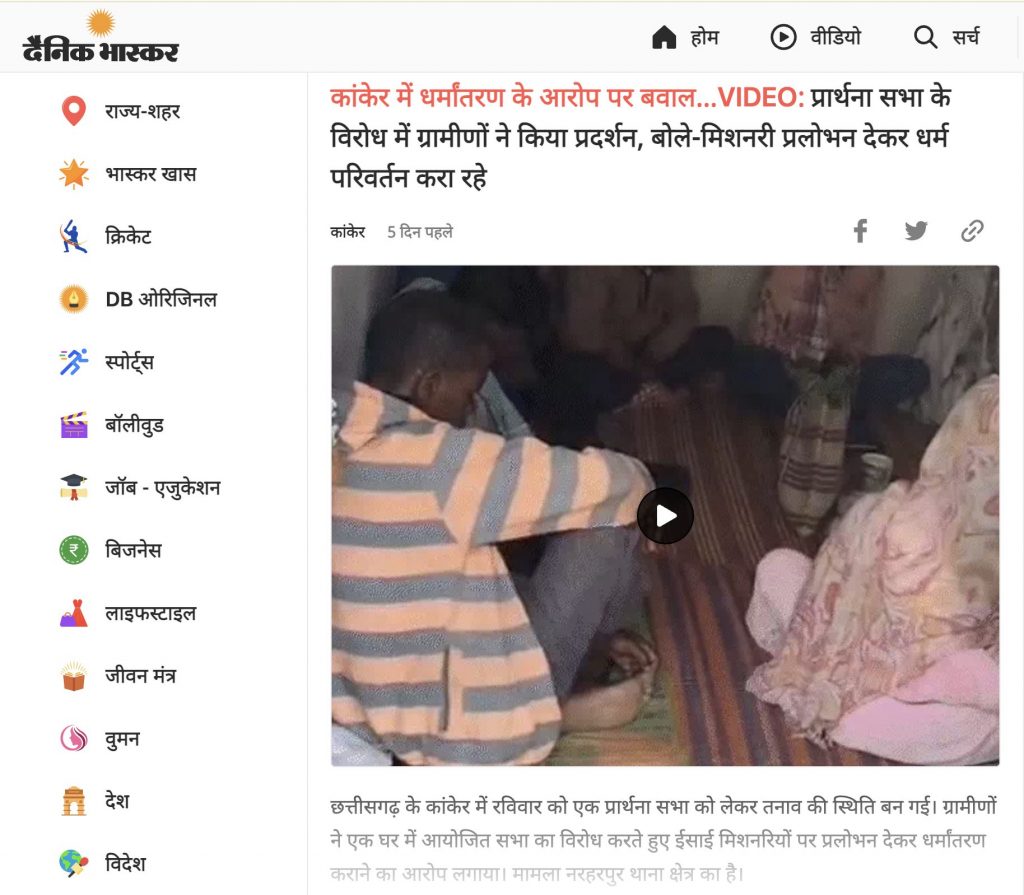 ऐसा ही कुछ हमें 4 जनवरी को छत्तीसगढ़ के कांकेर ज़िले के देवडोंगर गांव में देखने को मिला. जहाँ एक ग्रामीण सुखदर मंडावी के घर में आयोजित प्रार्थना सभा के दौरान हंगामा किया गया और प्रार्थना सभा का विरोध करते हुए आरोप लगाया गया कि सभा में प्रलोभन देकर धर्मांतरण कराया जा रहा था. साथ ही ग्रामीणों का कहना था कि गांव में बाहरी लोगों द्वारा इस तरह की गतिविधियां उनकी पारंपरिक मान्यताओं और मूल संस्कृति के खिलाफ हैं.