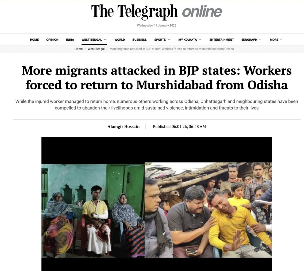 4 जनवरी: ओडिशा, छत्तीसगढ़ में बंगाली भाषी मज़दूरों पर हमला