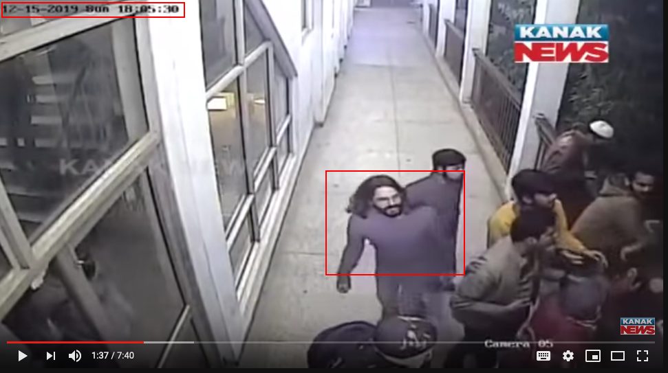 कनक न्यूज़ द्वारा अपलोड किये गए CCTV फ़ुटेज में मौजूद टाइम स्टैम्प की मदद से लम्बे बाल वाला लड़का रीडिंग रूम के कॉरिडोर में 18:05:30 पर दिखाई देता है.