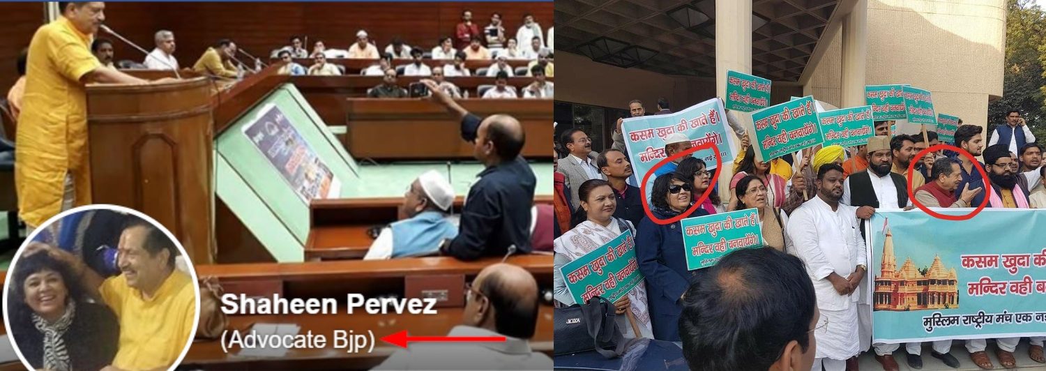 इसके अलावा, एमआरएम की शाहीन परवेज फेसबुक पर खुद को “भाजपा की पक्षकार” बताती हैं; उनकी डीपी (display picture) और ‘राम मंदिर’ समारोह में उनकी तस्वीर, दोनों इंद्रेश कुमार के साथ हैं।