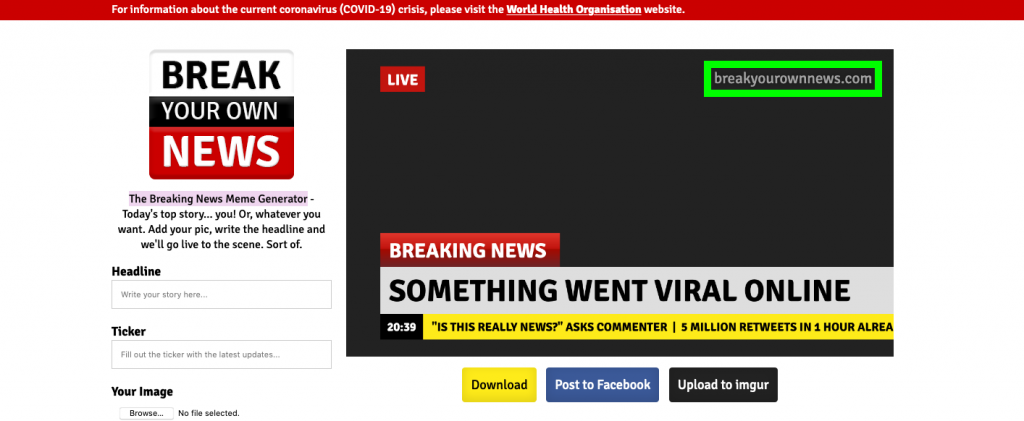 ये तस्वीर मीम बनाने वाली बेबसाइट, ब्रेक योर ओन न्यूज़, की मदद से बनाई गई है. मीम बनने के बाद, तस्वीर पर ‘breakyourownnews.com’ का वाटरमार्क दिखता है. नीचे के स्क्रीनशॉट में उसे हरे रंग से हाईलाइट किया गया है.
