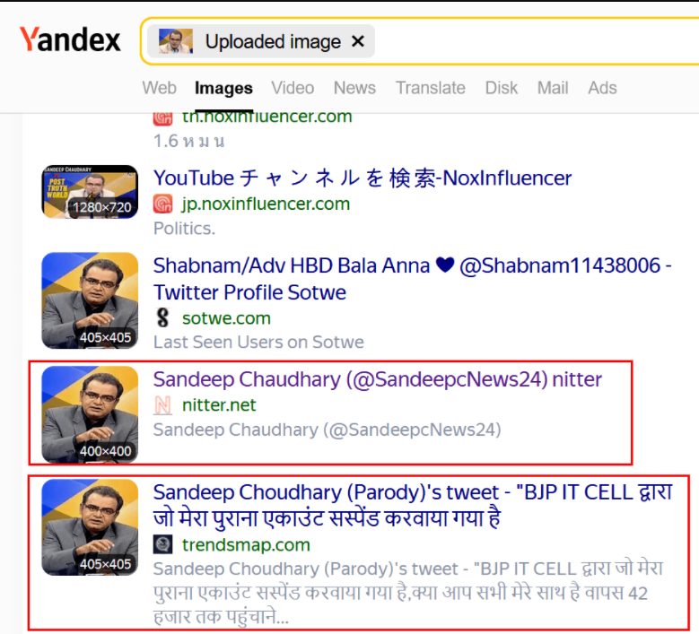 हमने यांडेक्स के ज़रिए न्यूज़ ऐंकर की तस्वीर का रिवर्स इमेज सर्च किया. इससे ऐंकर की पहचान न्यूज़ 24 के संदीप चौधरी के रूप में हुई.