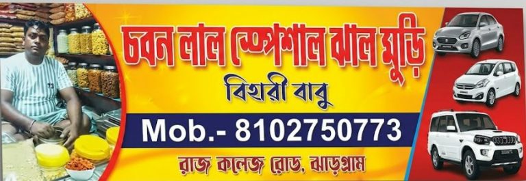 झालमुरी विक्रेता एक SPG अधिकारी है या नहीं, इस दावे की सच्चाई जानने के लिए ऑल्ट न्यूज़ के एक पत्रकार ने 22 अप्रैल को दुकान का दौरा किया. ये दुकान, चवन लाल स्पेशल झाल मुरी, झाड़ग्राम में राज कॉलेज रोड पर कॉलेज मोर ट्रैफ़िक सिग्नल के पास स्थित है. हमने देखा कि दुकान के साइनबोर्ड (नीचे तस्वीर) में नरेंद्र मोदी के साथ दिख रहे उसी व्यक्ति की तस्वीर भी है.