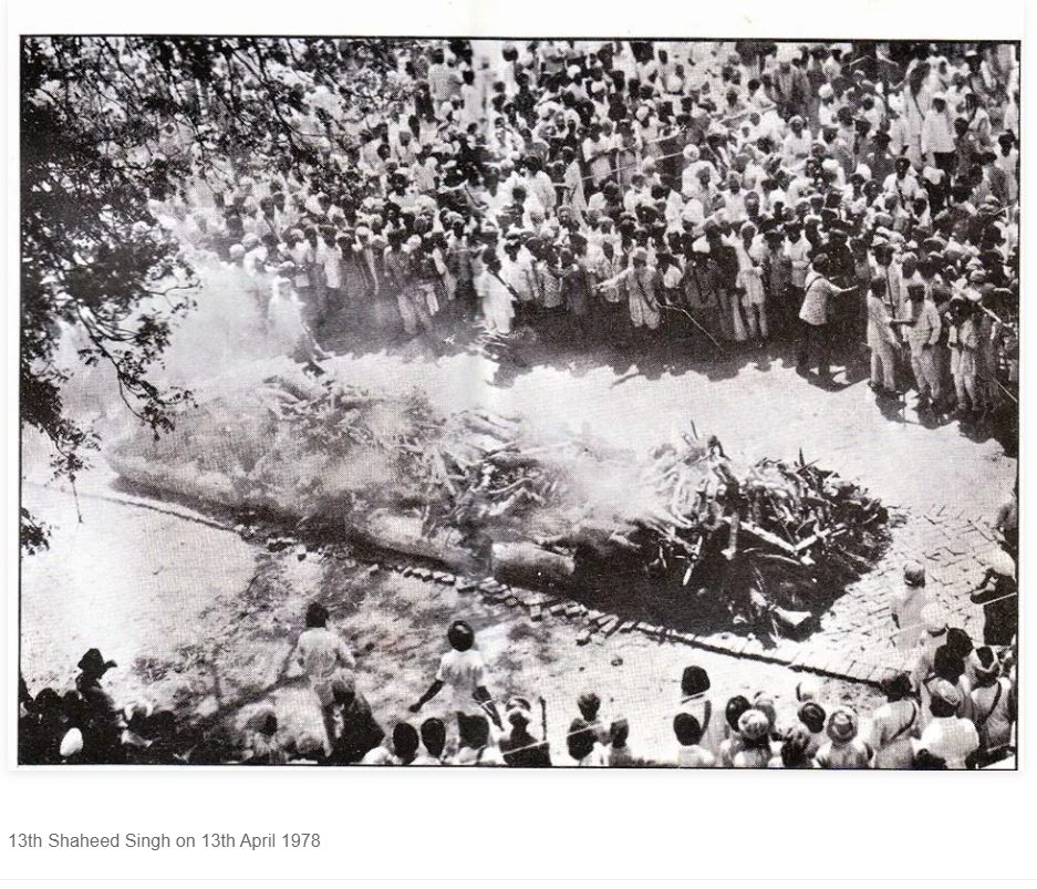 15 अप्रैल 1978 को अमृतसर के श्री रामसर साहिब गुरुद्वारा के सामने इन 13 सिखों का अंतिम संस्कार किया गया था. वायरल हो रही तस्वीर उसी मौके की है. इसी घटना की दूसरे ऐंगल से ली गयी बेहतर क्वालिटी की एक तस्वीर हमें news.drgurbani.com पर मिली.