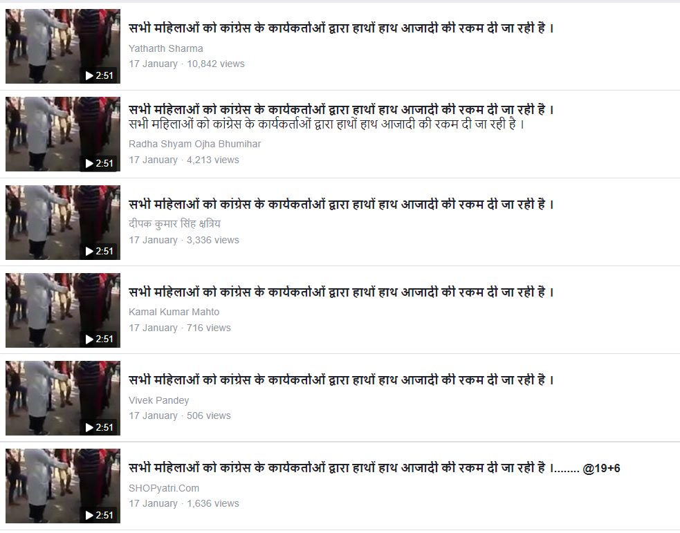 वीडियो का शीर्षक इस प्रकार है, “कांग्रेस मणिपुर, इम्फाल में वोटरों को दे रही है रिश्वत? वीडियो हुआ वायरल !” (अनुवाद) उपरोक्त वीडियो को मार्च 2017 में अपलोड किया गया था और वीडियो की पृष्ठभूमि में राहुल गांधी की आवाज़ नहीं बल्कि लोगों का आवाज़ सुना जा सकता है।