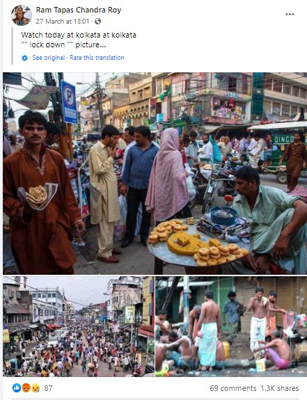 इस तरह शेयर हो रही सभी तस्वीरें पुरानी है. यहां तक कि इनमें से 2 तस्वीरें तो भारत की हैं ही नहीं. पाकिस्तान की पुरानी तस्वीरें, जिसमें लोगों की भीड़ दिखती है उसे लॉकडाउन के समय कोलकाता की बताकर शेयर की गयी.