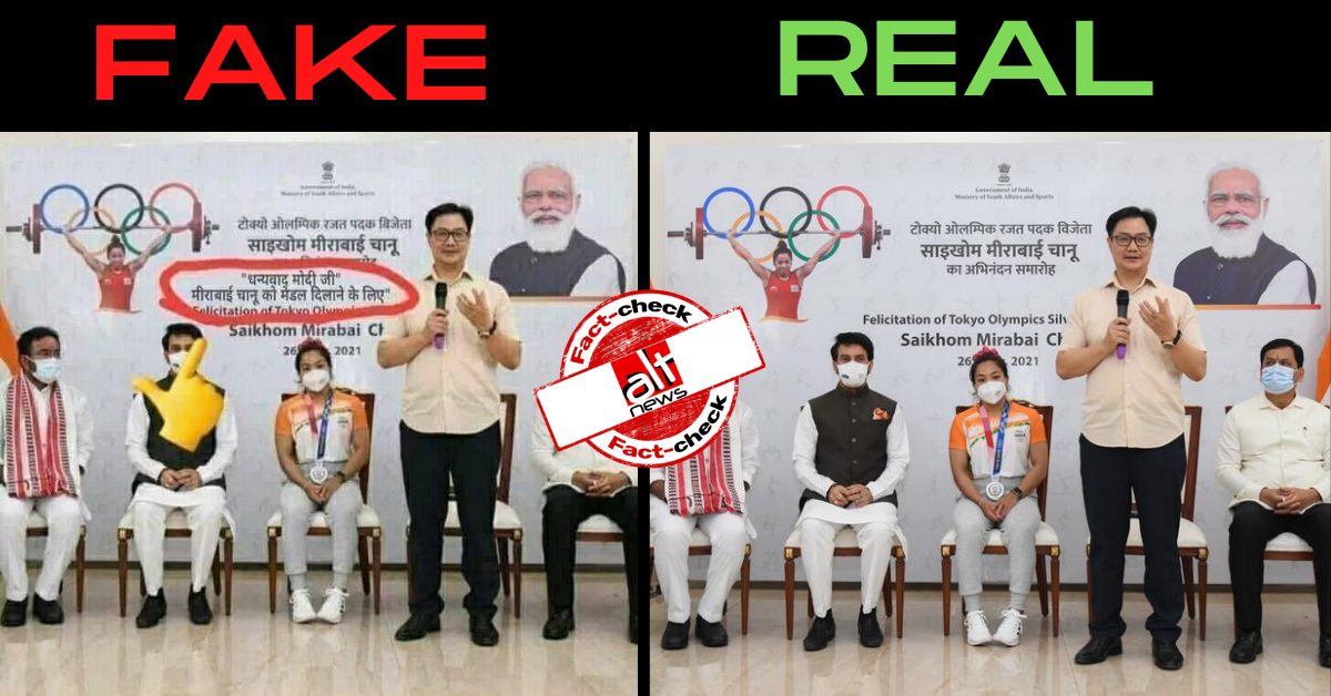 ओलंपिक में मीराबाई चानू की जीत पर नरेंद्र मोदी को धन्यवाद देने वाला पोस्टर फ़र्ज़ी है