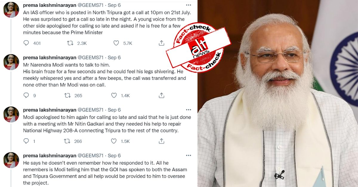 नरेंद्र मोदी ने त्रिपुरा के IAS ऑफ़िसर को हाईवे की मरम्मत के लिए किया था फ़ोन? वायरल कहानी की सच्चाई