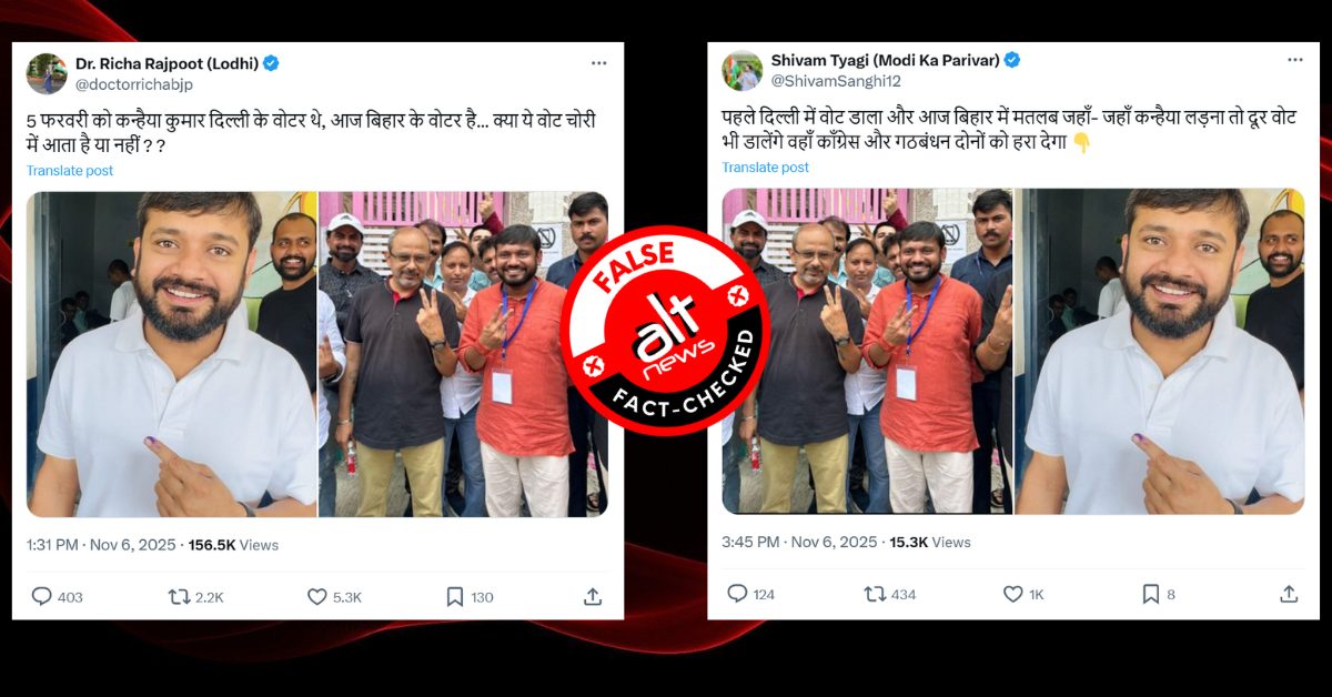 कन्हैया कुमार ने पहले दिल्ली से वोट डाला और अब बिहार से मतदान कर रहे हैं? झूठा दावा