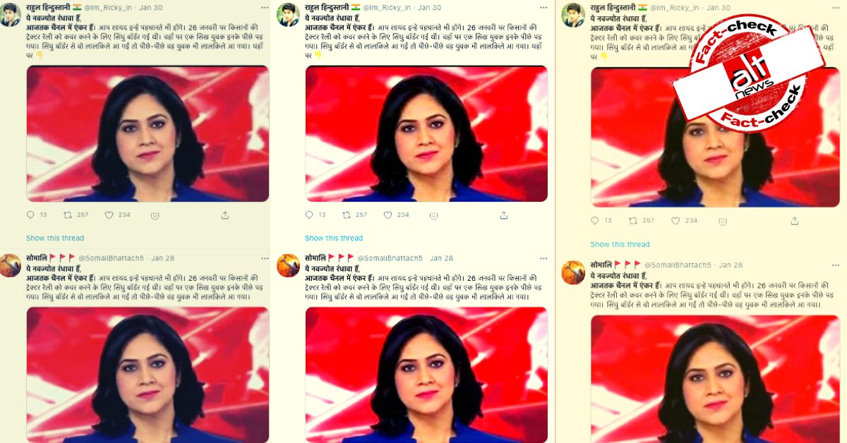 आजतक की पत्रकार के साथ ट्रैक्टर रैली में बदसलूकी की फ़र्ज़ी कहानी की गयी शेयर