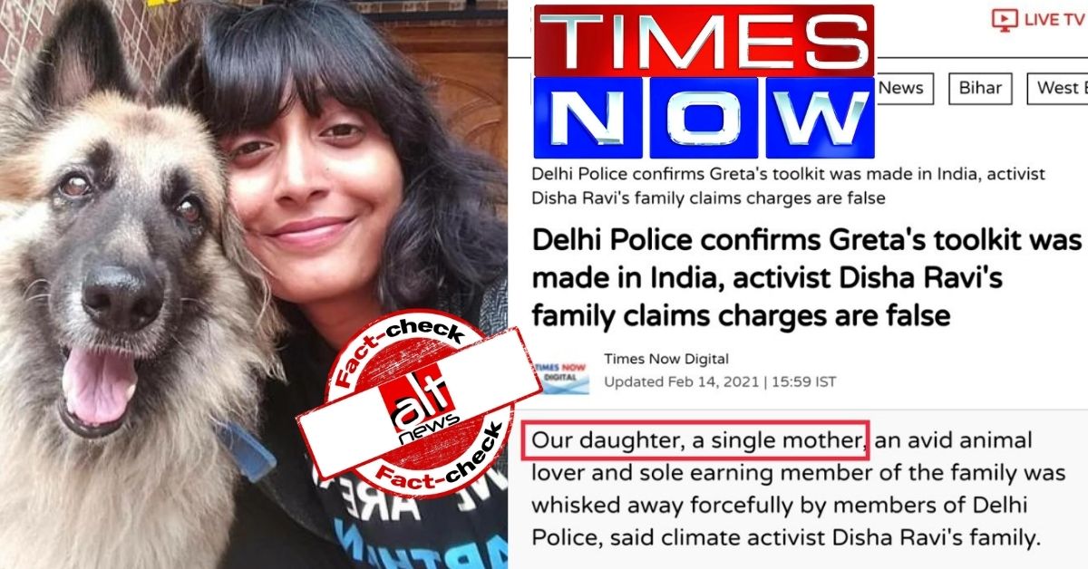 टाइम्स नाउ ने छापी ग़लत जानकारी, 22 साल की पर्यावरण ऐक्टिविस्ट दिशा को बताया सिंगल मदर