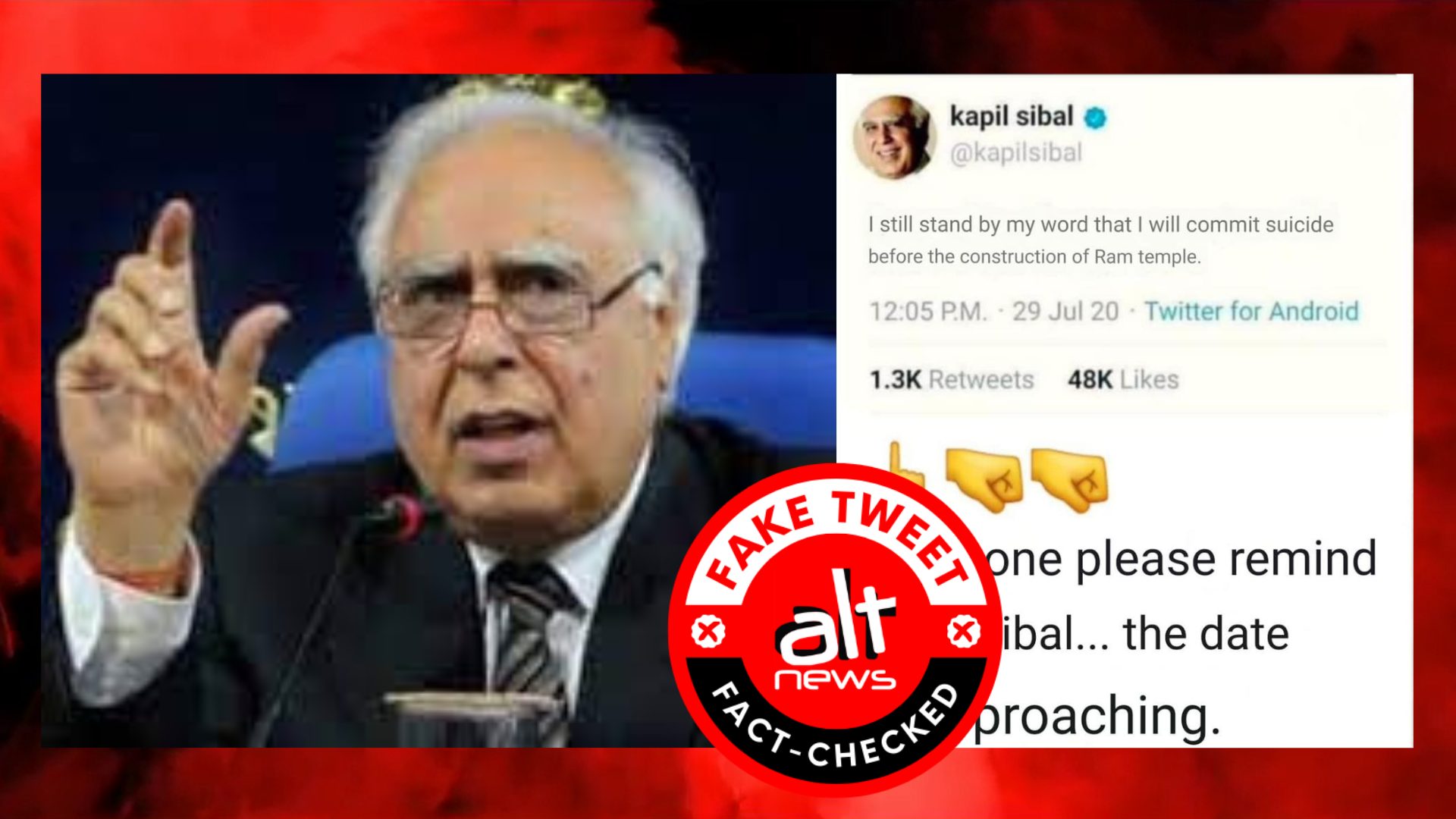 कपिल सिब्बल ने कभी नहीं कहा कि राम मंदिर बनने पर वो आत्महत्या कर लेंगे, वायरल ट्वीट फ़र्ज़ी है