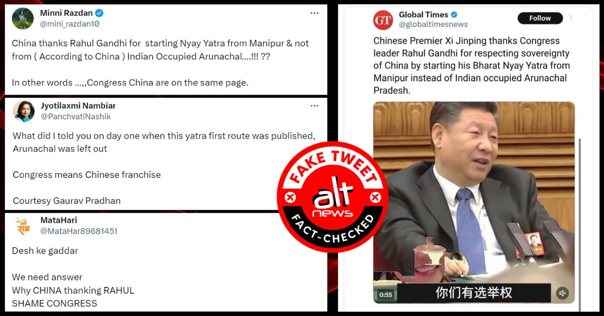 चीन के प्रेसिडेंट शी जिनपिंग ने राहुल गांधी को धन्यवाद नहीं कहा, फ़र्ज़ी ट्वीट वायरल