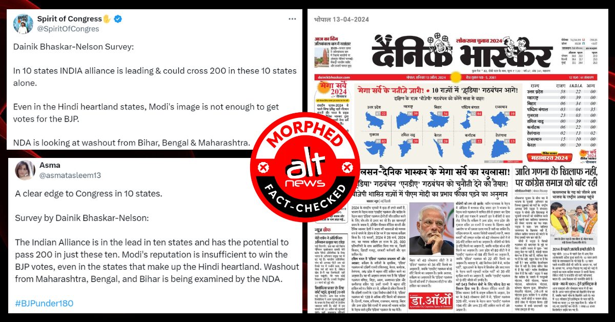 दैनिक भास्कर ने नहीं करवाया ‘I.N.D.I.A गठबंधन’ की बढ़त दिखाता मेगा सर्वे, फ़र्ज़ी क्लिप