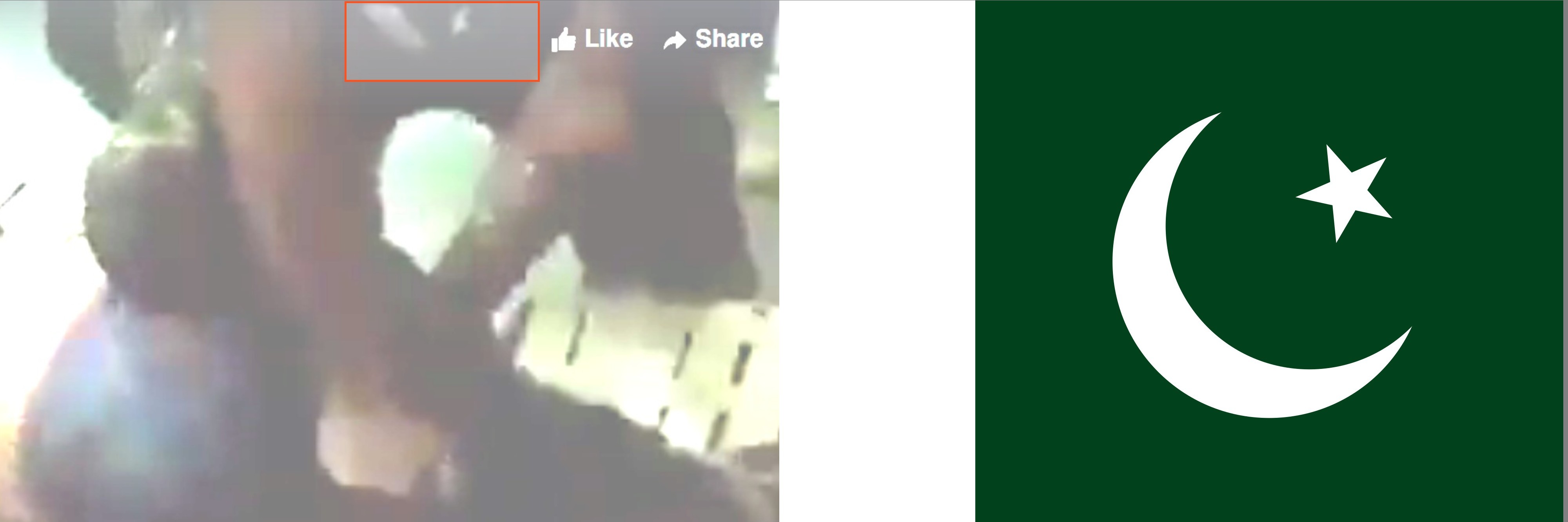 हामिद मीर द्वारा शेयर किए गए उसी वीडियो में 0:17 सेकेंड पर पाकिस्तान का राष्ट्रीय झंडा एक पल के लिए देखा जा सकता है, लेकिन केवल तभी, जब स्क्रीनशॉट का एक्सपोजर (brightness) बढाया गया हो। एसएमहोक्सस्लेयर इसे इंगित करने वाले पहले थे।