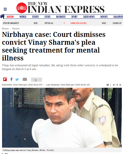 पहले बात करते हैं निर्भया केस के नाबालिग अपराधी की बताकर शेयर हो रही तस्वीर की. तस्वीर में दिखने वाला व्यक्ति निर्भया केस का अपराधी ज़रूर है लेकिन ये नाबालिग अपराधी नहीं है. ये शख्स निर्भया केस का दूसरा अपराधी विनय शर्मा है. बता दें कि विनय शर्मा की एक और तस्वीर दिसंबर 2019 में निर्भया केस के नाबालिग अपराधी की बताकर शेयर हुई थी. उस वक़्त ऑल्ट न्यूज़ ने इस तस्वीर की सच्चाई सामने रखते हुए एक फ़ैक्ट-चेक रिपोर्ट पब्लिश की थी. 22 फ़रवरी 2020 की द न्यू इंडियन एक्स्प्रेस की रिपोर्ट में निर्भया केस के अपराधी विनय शर्मा की तस्वीर शेयर की गई है. इस आर्टिकल के मुताबिक, विनय शर्मा ने अपनी मानसिक स्थिति खराब होने के कारण दिल्ली कोर्ट में अर्ज़ी डाली थी. लेकिन कोर्ट ने विनय की इस याचिका को खारिज कर दिया था.