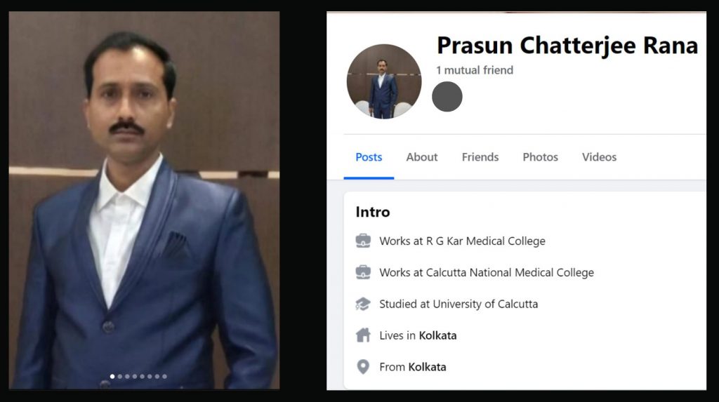 ऑल्ट न्यूज़ को कोलकाता में अपने सोर्स से विश्वसनीय रूप से पता चला कि प्रसून चटर्जी (जो आधिकारिक तौर पर CNMC&H में डेटा एंट्री ऑपरेटर हैं) ने लंबे समय तक पूर्व RG कर प्रिंसिपल संदीप घोष के करीबी सहयोगी के रूप में भी काम किया है. इसकी रिपोर्ट बंगाली मीडिया ने भी की है. प्रसून चटर्जी के फ़ेसबुक बायो में दोनों लिखा है: “वर्क्स एट RG कर मेडिकल कॉलेज” और “वर्क्स एट कलकत्ता नेशनल मेडिकल कॉलेज.”