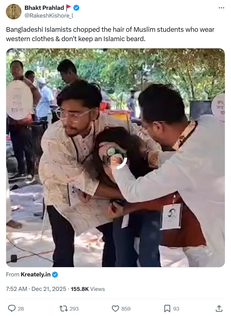Bangladeshi Islamists chopped the hair of students who wear western clothes & don’t keep a beard. pic.twitter.com/xkmC2XinYi