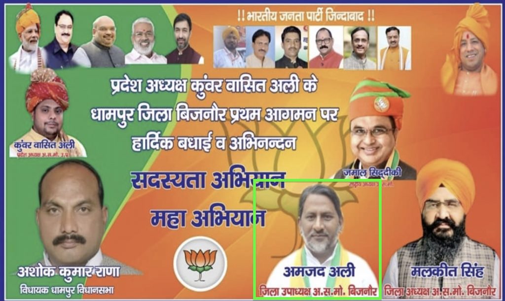 नरेंद्र प्रताप ने भाजपा का एक राजनीतिक पोस्टर भी शेयर किया जिसमें अमजद अली अंसारी की तस्वीर है.