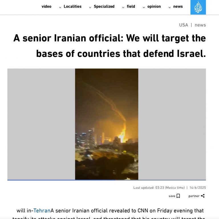 दावे की पुष्टि करने के लिए, हमने क्लिप से कीफ़्रेम का इस्तेमाल करके रिवर्स इमेज सर्च किया. इससे हमें अल जज़ीरा की 14 जून, 2025 की रिपोर्ट मिली, जिसमें यही वीडियो था. अरबी शीर्षक का अनुवाद है: “वरिष्ठ ईरानी अधिकारी: हम उन देशों के ठिकानों को निशाना बनाएंगे जो इज़राइल की रक्षा करते हैं.” हालांकि, वीडियो के साथ कोई कैप्शन नहीं था जिससे ये साफ होता हो कि इसे कहां फ़िल्माया गया था.