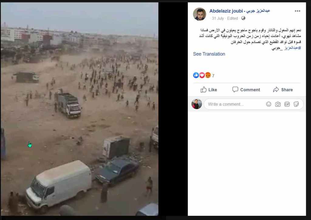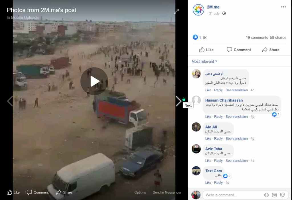 ऑल्ट न्यूज़ ने इस वायरल वीडियो को इनविड (ऑनलाइन वेरीफ़िकेशन टूल) के ज़रिये एनलाइज़ किया और पहले फ़्रेम का गूगल पर रिवर्स इमेज सर्च किया. हमें हुबहू यही तस्वीर एक फेसबुक पेज 2M पर मिली जो एक मोरक्कन टीवी नेटवर्क है. इसके अलावा ये souss plus से जुड़े मोरक्को के पत्रकार अब्देलाज़ीज़ जूबी ने पोस्ट किया था. ये पोस्ट 31 जुलाई का है.