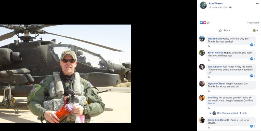 वॉरेन के फ़ेसबुक प्रोफ़ाइल पर सरसरी निगाह डालने पर पता चला कि वे अमेरिकी सेना में रह चुके हैं. वॉरेन ने एक तस्वीर अपलोड की है जिसमें बैकग्राउंड में ठीक उसी ब्लैक कलर का अपाचे हेलीकॉप्टर देखा जा सकता है.