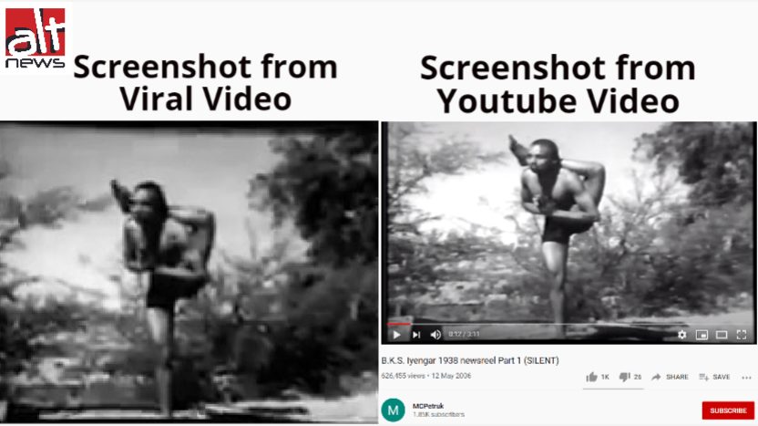 तो इस तरह, आधुनिक योग के पिता माने जाने वाले बीकेएस अय्यंगार के साल 1938 में योग करने का वीडियो नरेंद्र मोदी का बताकर शेयर किया जा रहा है.