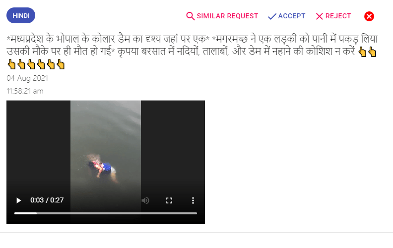 ऑल्ट न्यूज़ को अपने व्हाट्सऐप हेल्पलाइन नंबर (+91 76000 11160) और मोबाइल अप्लिकेशन पर दावे की सच्चाई जानने के लिए कई रिक्वेस्ट्स मिलीं. रिक्वेस्ट में एक सवाल भी आया कि क्या वीडियो पवई, मुंबई का है? वहीं एक ने सुझाव दिया कि घटना MP के कोलार बांध की है. वीडियो के साथ किया गया दावा फ़ेसबुक पर भी काफ़ी फैल रहा है.