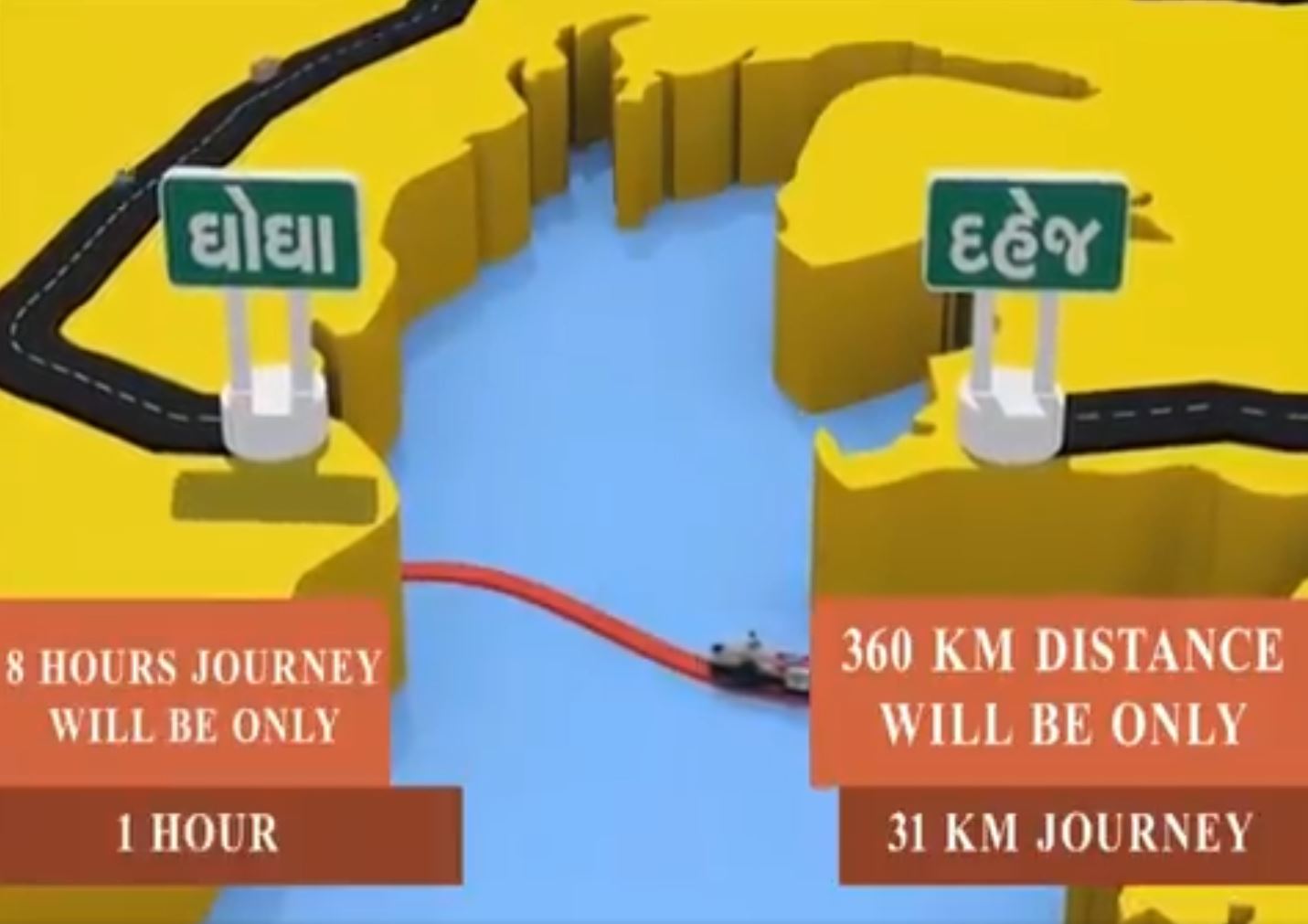 भावनगर से भरूच रोड की दूरी है 350 किलोमीटर , और समुद्री रास्ते से इसकी दूरी है 32 किलोमीटर, और इसी समुद्री रास्ते से प्रधानमंत्री ने जहाज द्वारा एक सर्विस चालू की है इस जहाज की क्षमता एक बार मे 50 ट्रक, 60 बसे, 200 कारे, 350 मोटरसाइकिल, 600 लोगो को, और समय सिर्फ आधे घंटे में pic.twitter.com/MRtKPjETZZ