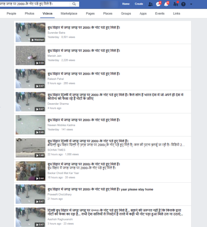 फ़ेसबुक यूज़र सुरेन्द्र बत्रा ने ये वीडियो शेयर करते हुए लिखा, “बुध विहार में जगह जगह पर 2000/-के नोट पडे हुए मिले हैं।” बत्रा ने अपने फ़ेसबुक परिचय में खुद को इंडियन नैशनल कांग्रेस से जुड़ा हुआ बताया है. बत्रा द्वारा पोस्ट किये गए इस वीडियो को आर्टिकल लिखे जाने तक 8,400 से ज़्यादा बार देखा जा चुका है. (पोस्ट का आर्काइव लिंक)