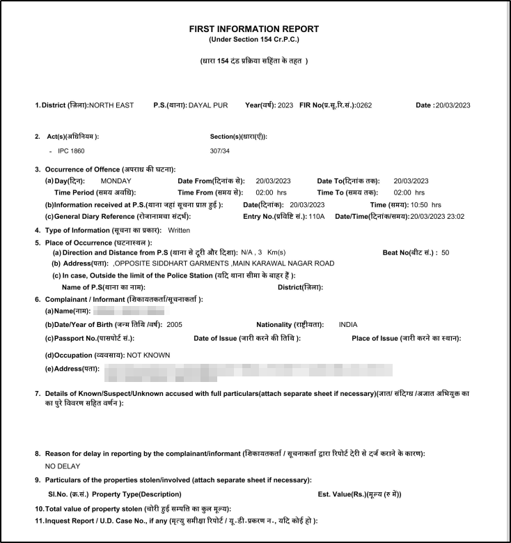 इसके बाद हमने मामले में दर्ज FIR कॉपी की जांच की. इसमें सभी पीड़ितों के नाम हैं. उनके नाबालिग़ होने की वजह से हमने उनके नाम ब्लर कर दिए हैं. इस शिकायत में भी घटना के बारे में वही जानकारियां दी गयीं हैं जो हिंदुस्तान टाइम्स की रिपोर्ट में हैं. हमने एक पीड़ित लड़के के भाई से भी बात की उन्होंने कहा कि 2 स्कूल के बच्चों के बीच झगड़ा हुआ था. और अब पांचों पीड़ितो को हॉस्पिटल से डिस्चार्ज कर दिया गया है. इससे ज़्यादा उन्होंने कुछ भी कहने से इनकार कर दिया.