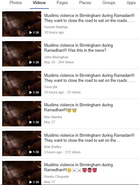 “Muslims violence in Birmingham during Ramadan!!! They want to close the road to eat on the roads”. This message was shared along with a video that shows rioters attacking cars on a street. It was claimed that the incident occurred in Birmingham, U.K when members of the Muslim community resorted to vandalism as they wanted to ‘eat on the roads’, in a reference to the practice of breaking fast during Ramadan. The video circulated on YouTube, Twitter and Facebook.