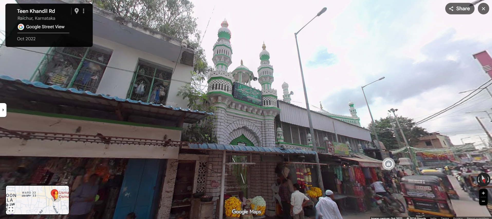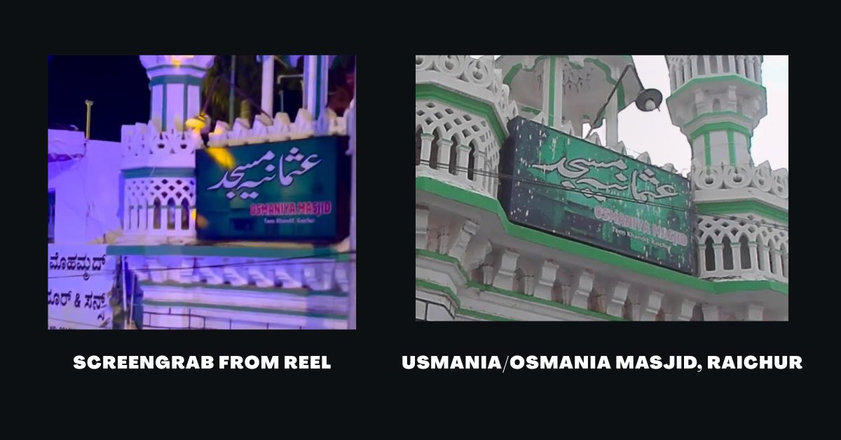 We searched for this mosque, adding the location of Raichur, and came across a street view of this mosque, which corroborates that the viral reel was indeed shot in this location.
