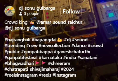 On inspecting the reel, we found that another user (@amar_sound_raichur) ws tagged in this reel, indicating that the video could be from Raichur, in Karnataka. Moreover, the hashtags associated with the reel denoted that it shows Ganesh Chaturthi celebrations.
