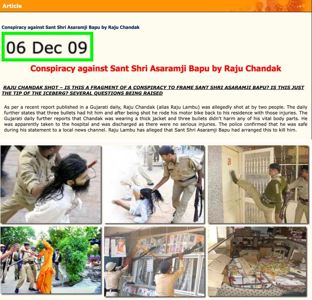 The article dates back to December 2009 and is no longer active. However, it can be accessed on Internet Archive. As per the article, the images show police brutality against members of the ashram on November 27, 2009. About 150 ashram followers were detained after clashing with the police in Gandhinagar.