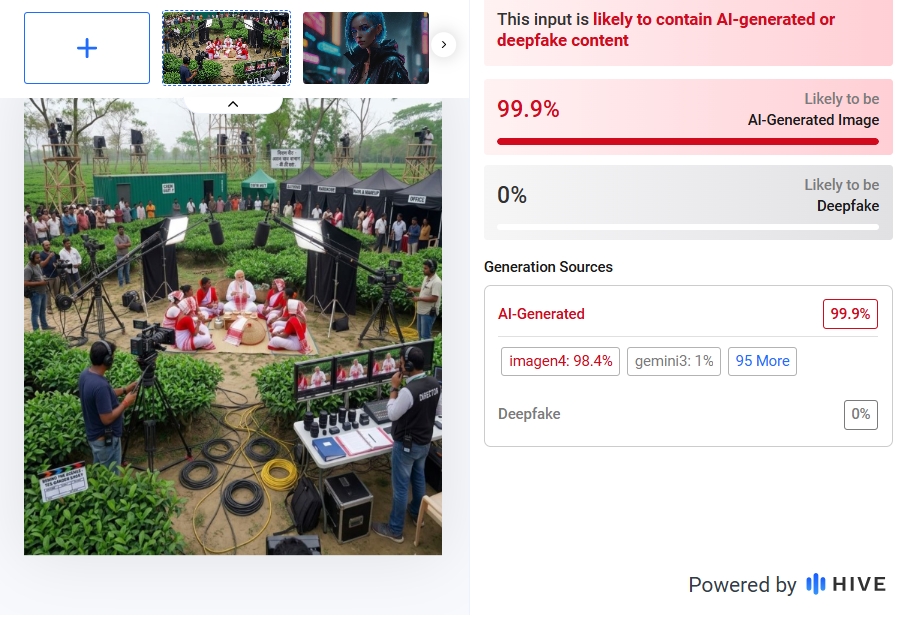 To sum up, the viral photo, claiming to show an elaborate photo-op during Prime Minister Modi’s recent visit to a Dibrugarh tea estate, is not genuine. It has been artificially generated.