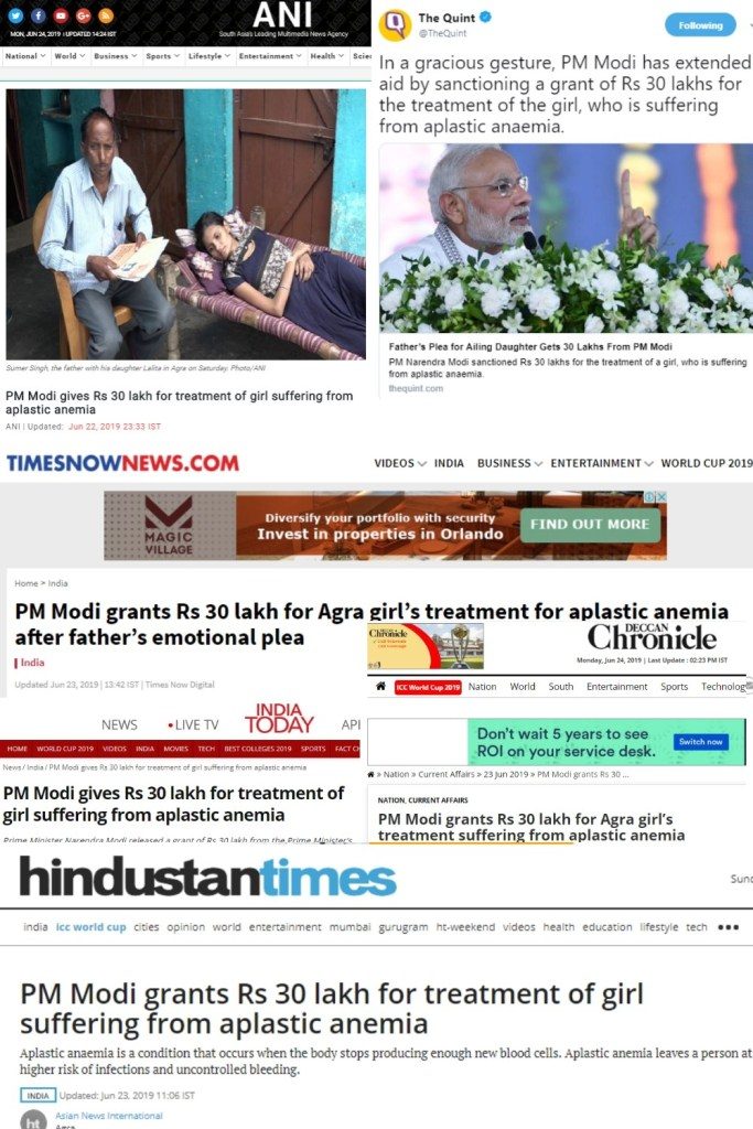 1. ANI misreports PMO granting Rs 30 lakh to ailing Agra girl, several media outlets follow suit