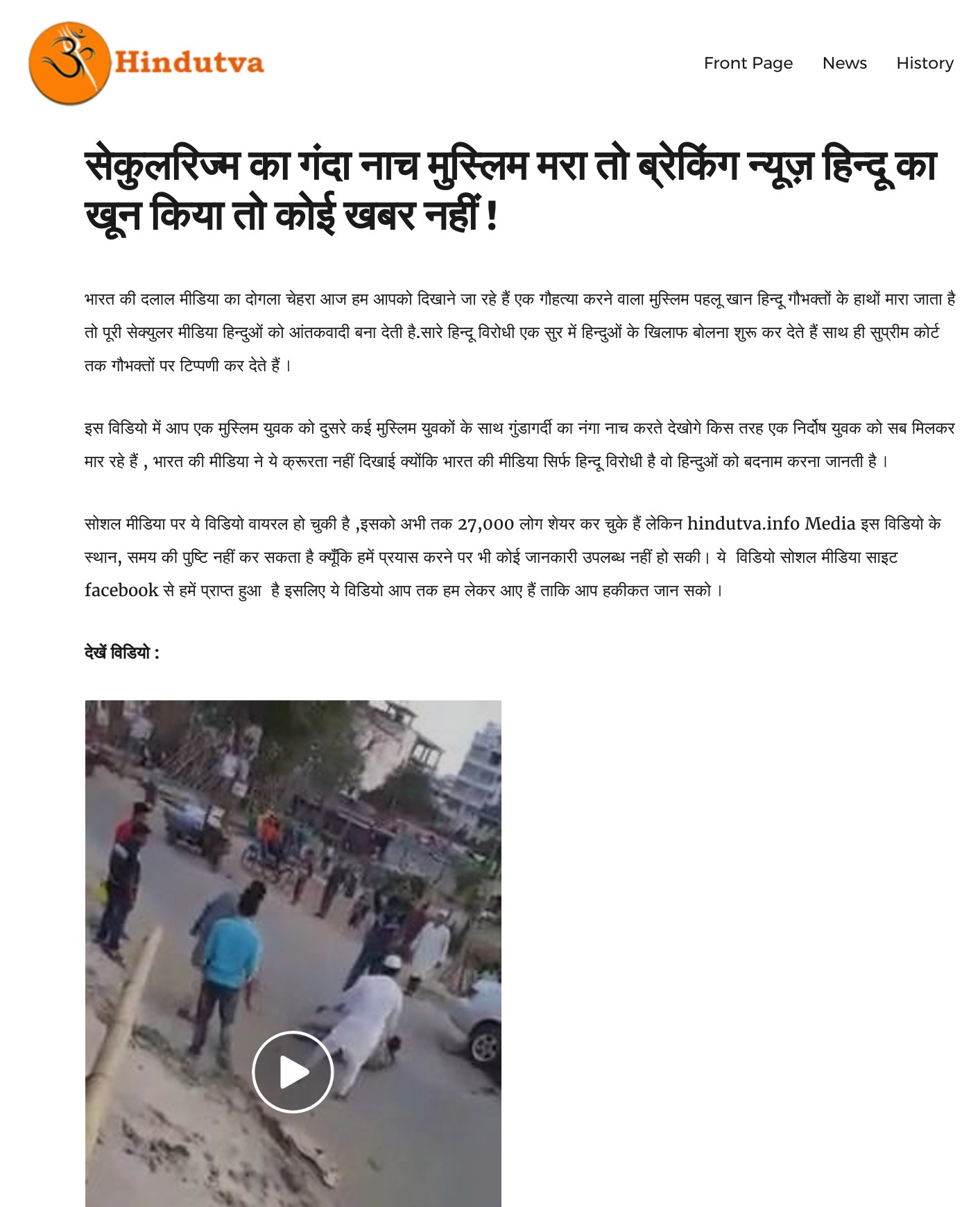 This was also carried by right-wing websites like Hindutva.info thus resulting in many more shares. We have reported how Hindutva.info routinely carries such fake videos like the Mexican video which was portrayed as RSS workers being killed in Kerala.