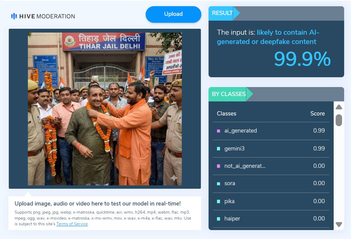 Secondly, the hand of one of the supporters assembled around Sengar appear to be distorted, which is a typical feature of AI-generated images.