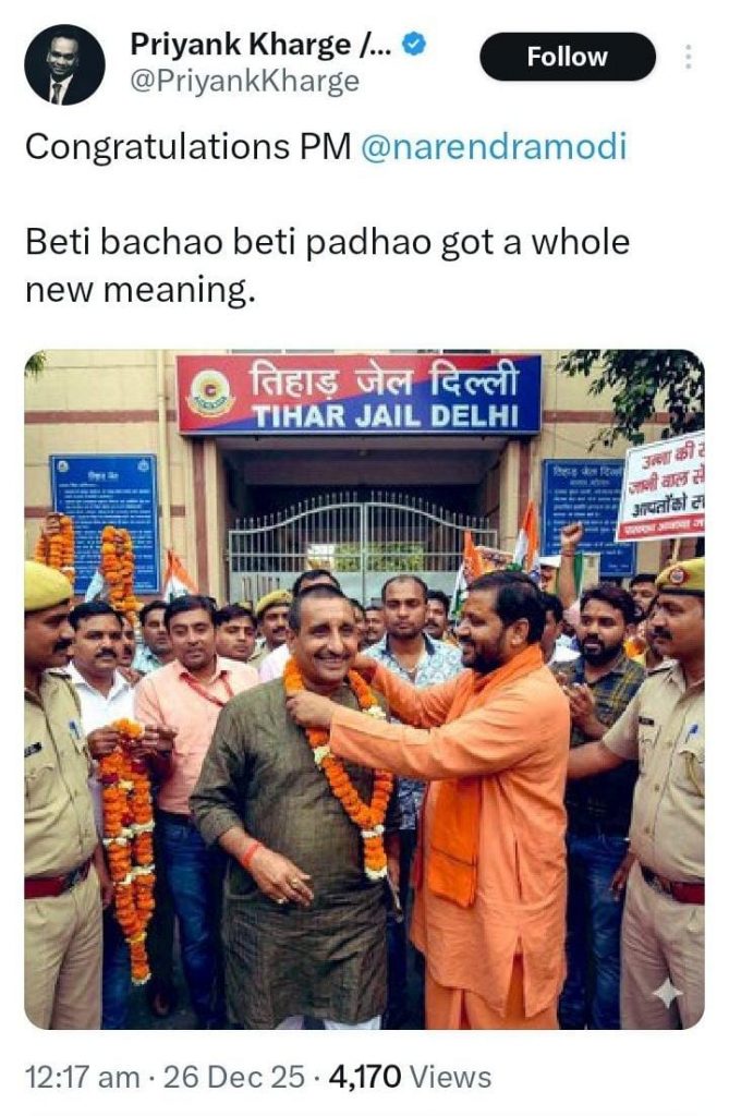 Readers should note that as mentioned earlier, even without the SC intervention, Sengar would not have walked out of jail on December 25 (the day when the image went viral) because of the other case in which he was serving a jail term.