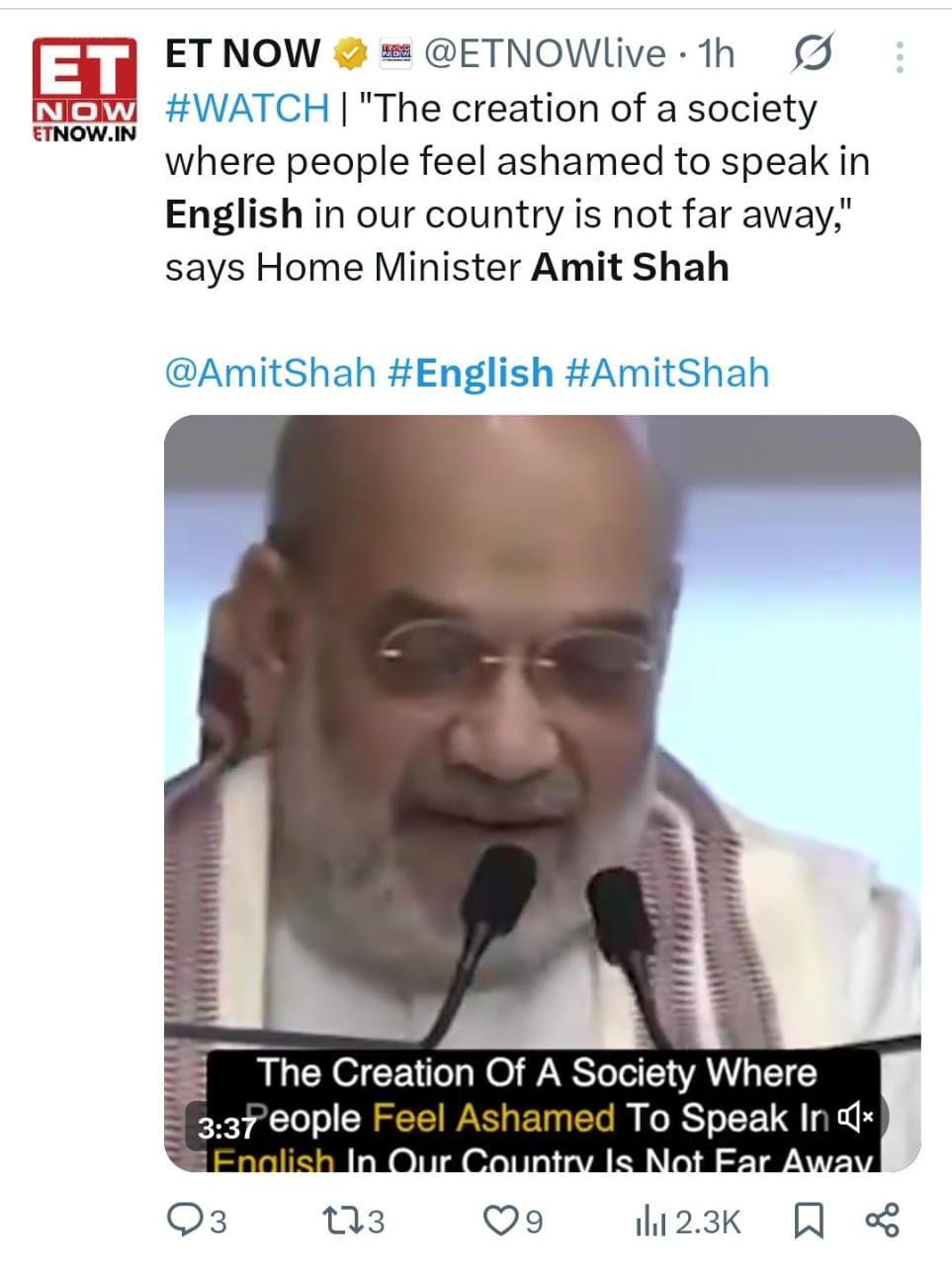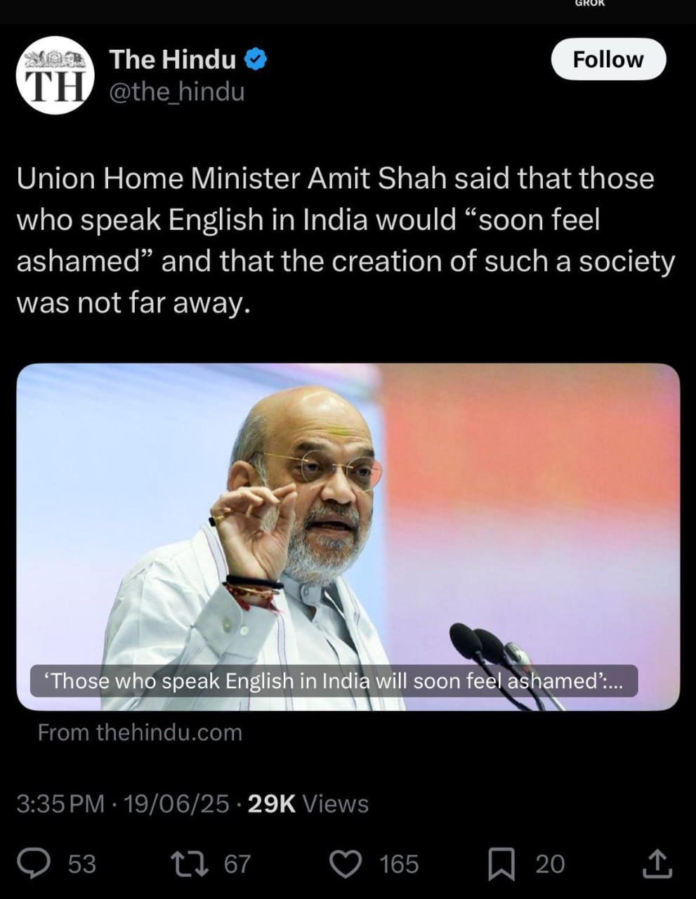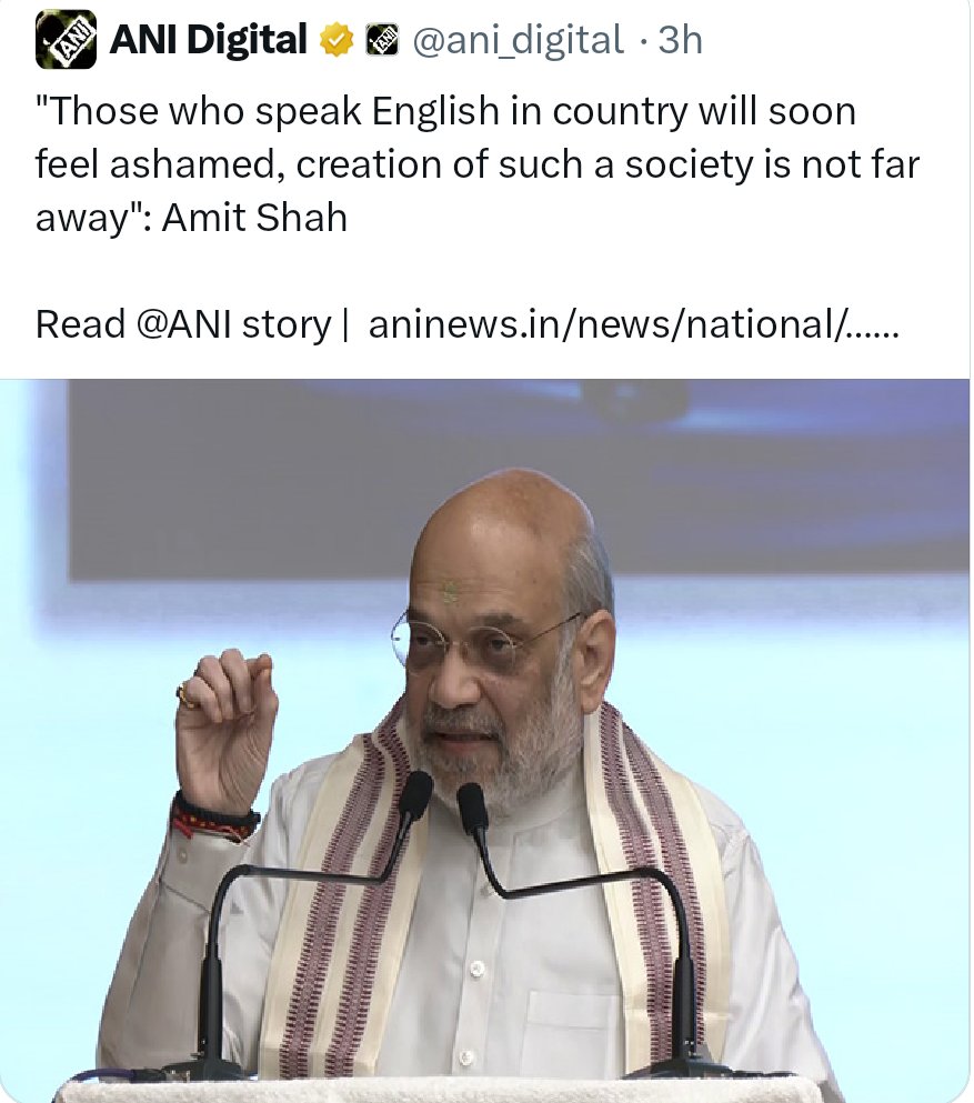 “English is not a barrier; it is a bridge… BJP-RSS don’t want India’s poor children to learn English—because they don’t want you to ask questions, move forward, or stand equal… English is as essential as your mother tongue—because it will secure jobs, boost confidence,” Opposition leader Rahul Gandhi said on Shah snubbing English.