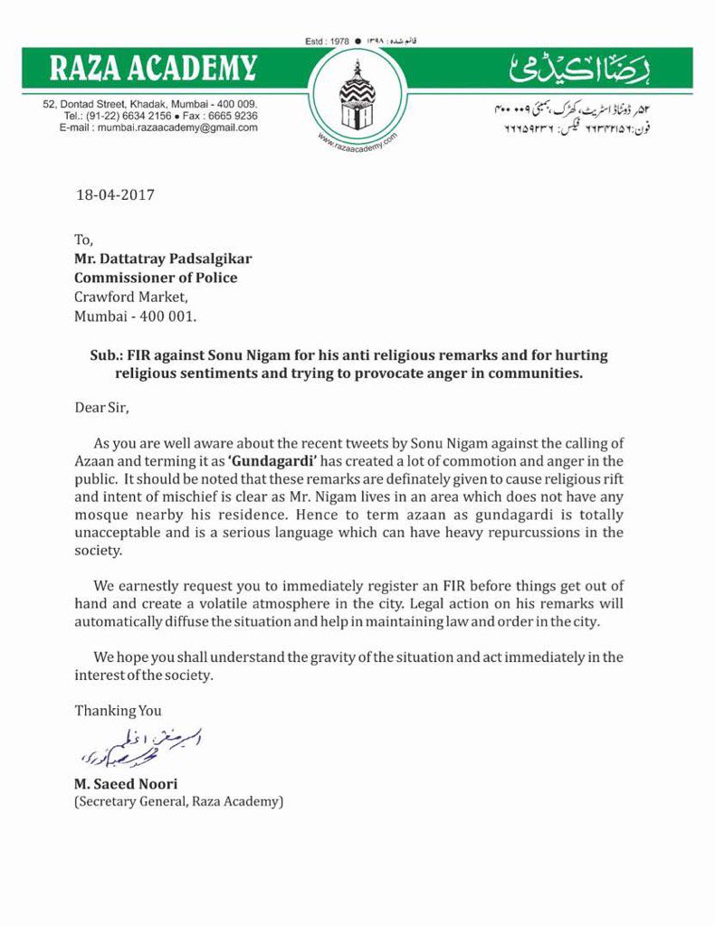 That is all that was required for the fatwa-dharis who seem to have a fatwa for every occasion these days. Out they came with their fatwa, what a golden chance to be on all TV channels and newspapers. Raza Academy wanted a FIR to be filed against Sonu Nigam.