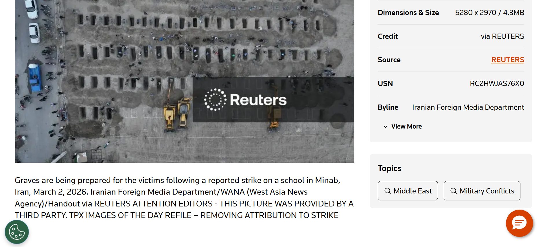 We also found that Reuters had shared the photo in its official website on March 2, 2026, giving credit to the Iranian Foreign Media Department/West Asian News Agency.