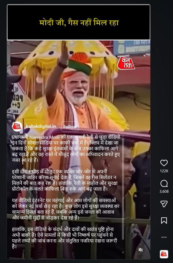 Several other Instagram users, like @millattimes, @indianfeed24hrs, @okindians, @m_khan.122, @p5news_up also posted the clip alleging that Prime Minister Narendra Modi had recently been in Rourkela, where he was asked about the LPG crisis by a by-stander.