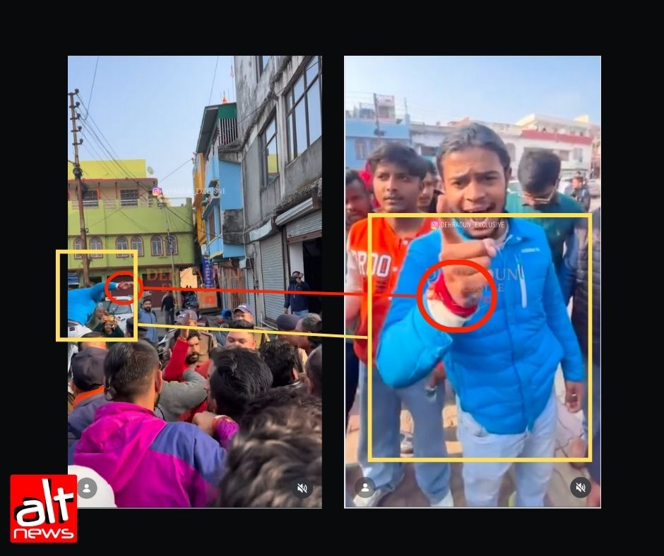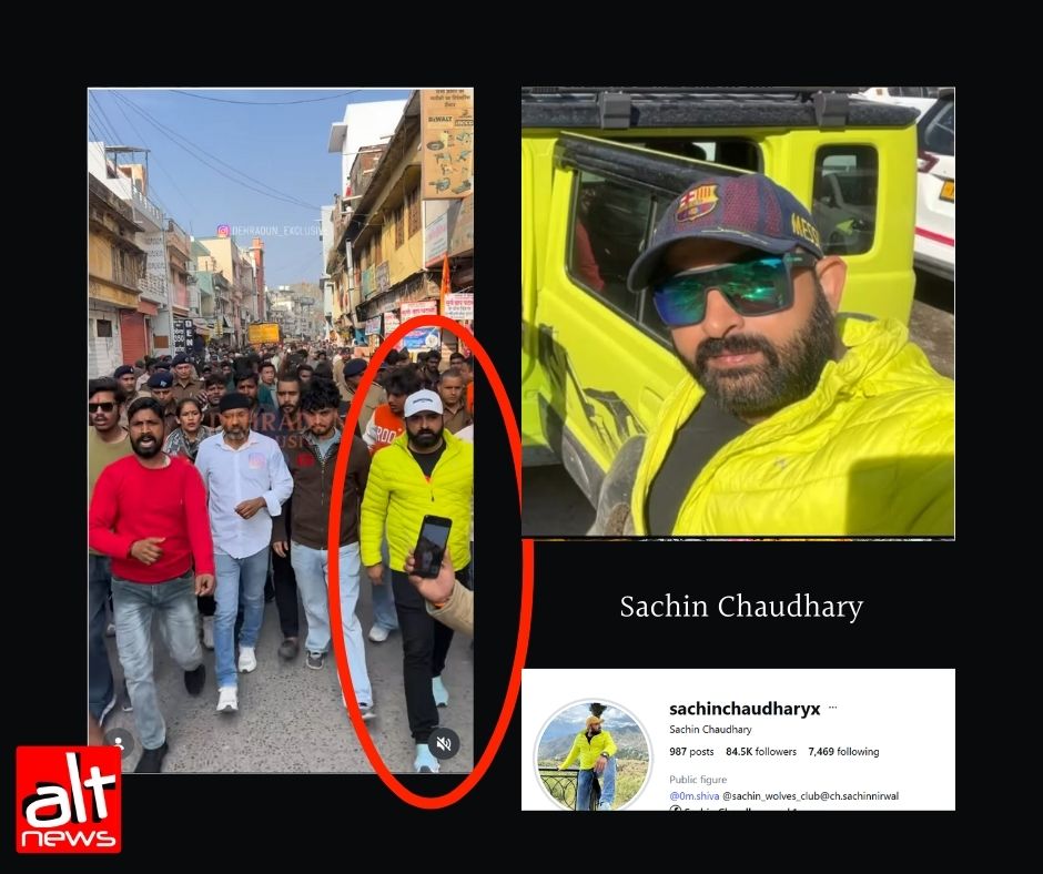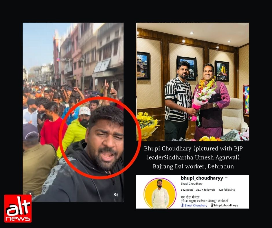 Alt News found an Instagram video posted by user @dehradun_exclusive of the protests that were held on January 31. In it, a large crowd of people can be seen marching while several men, who proclaim to be Bajrang Dal workers, issue threats to Kumar using expletives outside a gym that he owns. Some police personnel can be seen at the spot. One man jumps over policemen in an attempt to reach Kumar, standing at a distance, and several others follow.