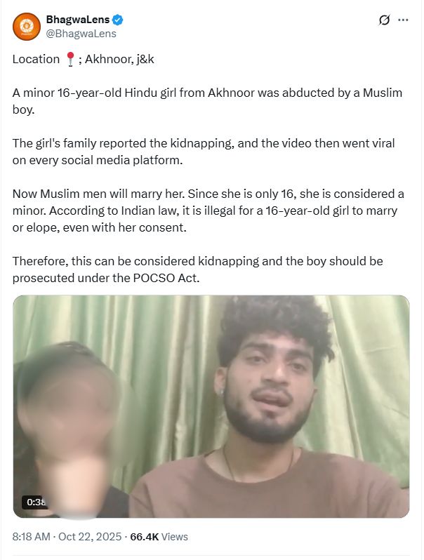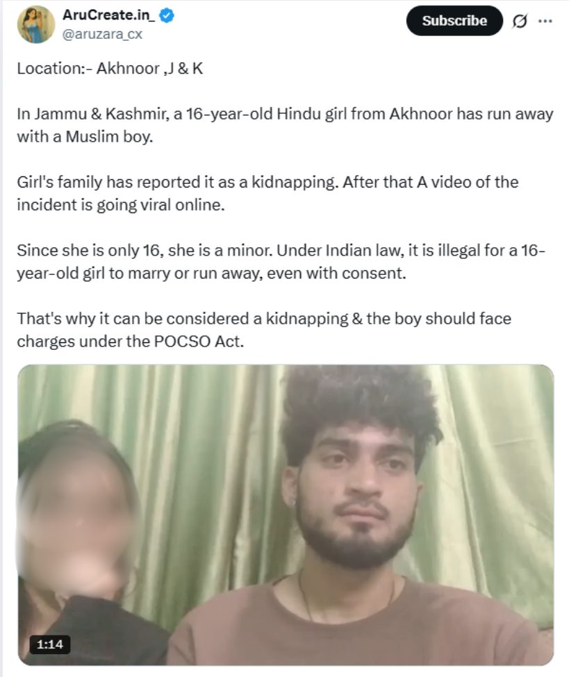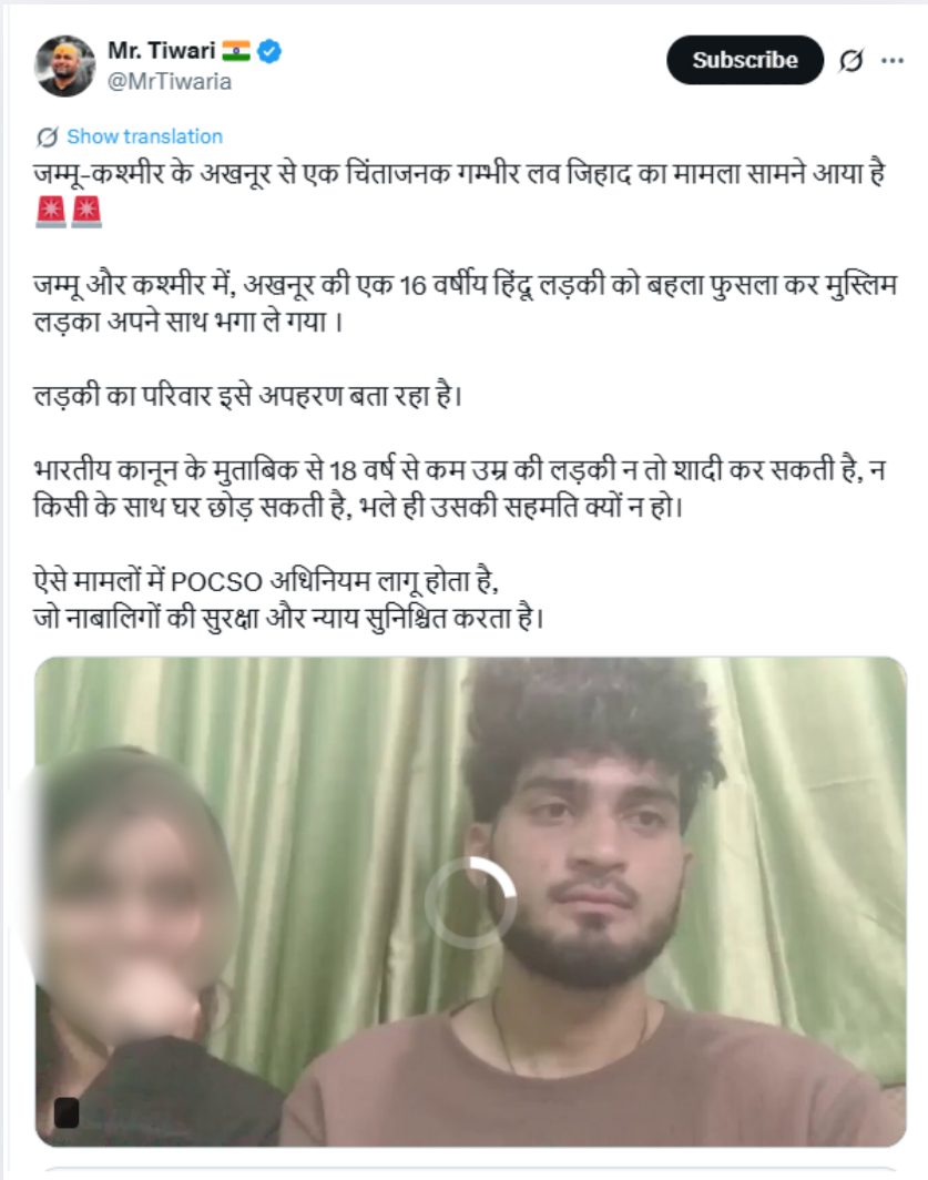 As it stands, a case of a Hindu man who marrying a minor Hindu girl was reported from Jammu and Kashmir. The man was arrested by J&K police from Bihar. However, social media users falsely claimed that the man was a Muslim.